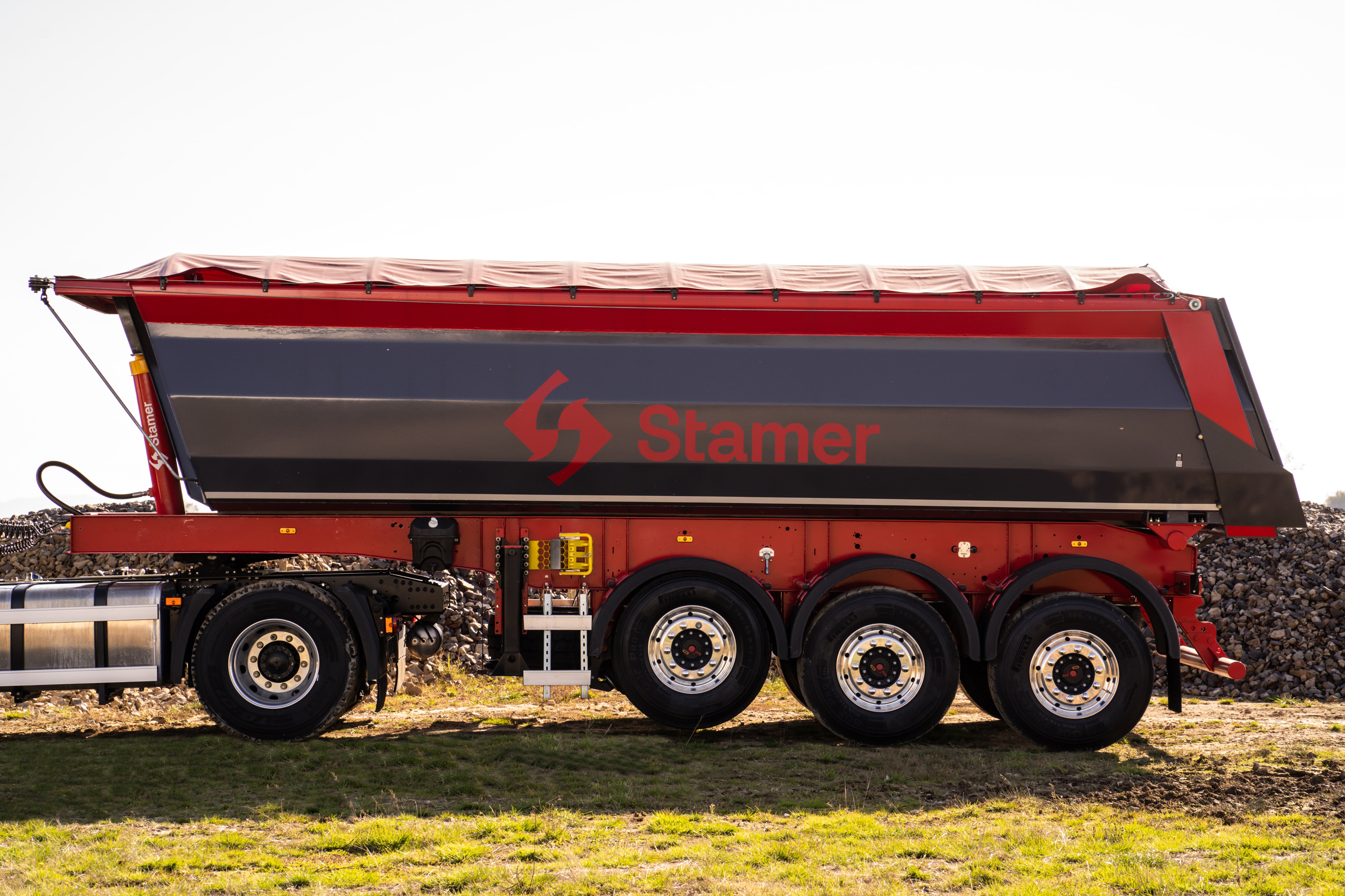 Semiremorca basculabilă Stamer cu 3 axe disponibilă în stoc este proiectată pentru transportul agregatelor, cu o capacitate de 25 m³. Construcția robustă și soluțiile tehnice moderne o recomandă pentru utilizare intensivă în aplicații industriale și de construcții.