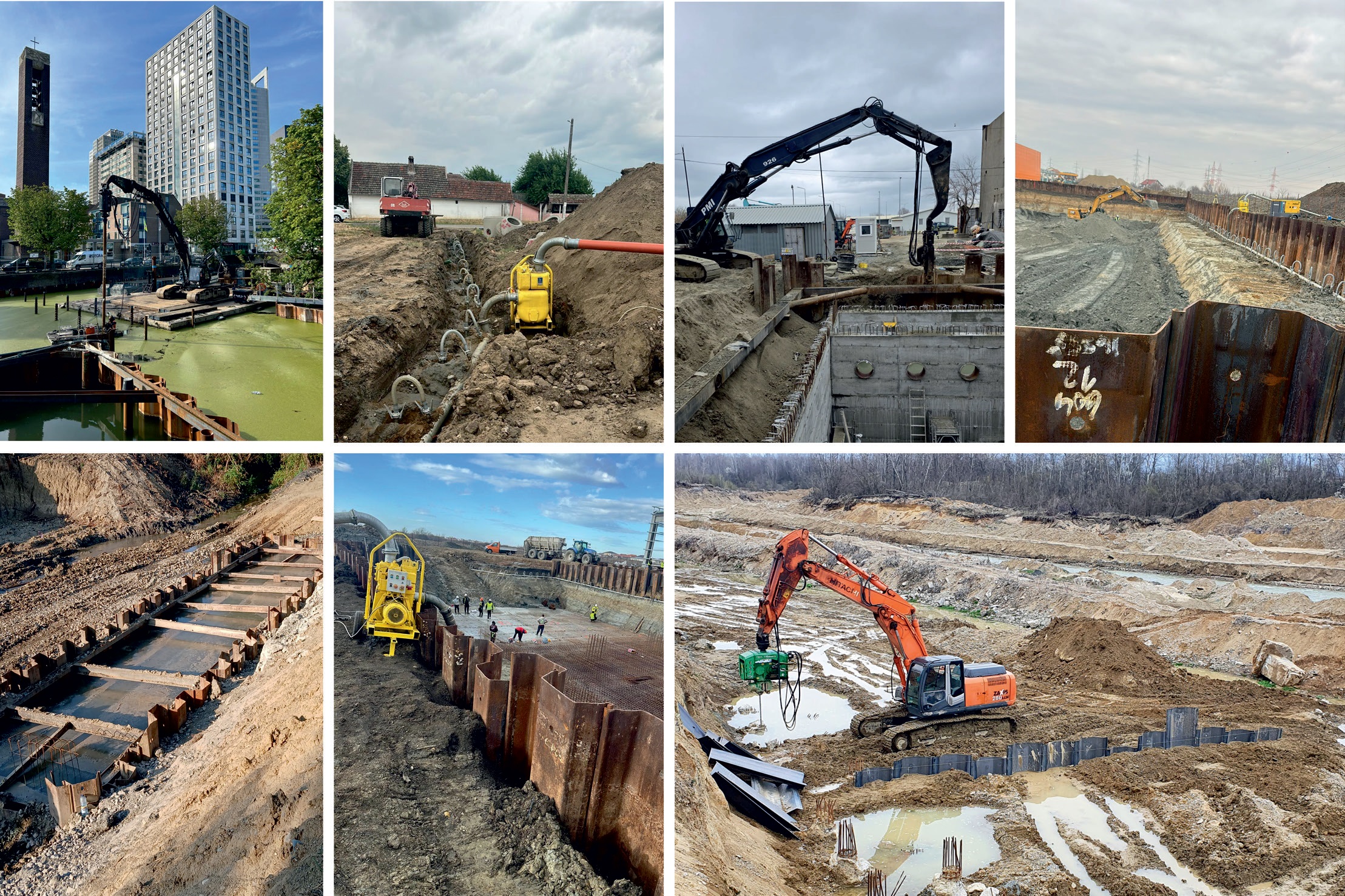 Compania deține două excavatoare șenilate de înaltă performanță, special configurate pentru lucrări cu palplanșe. Primul este un excavator Hitachi de 30 de tone, echipat cu trei brațe și un vibrociocan puternic (fabricat în 2021), care permite execuția lucrărilor cu palplanșe de până la 10 metri lungime.