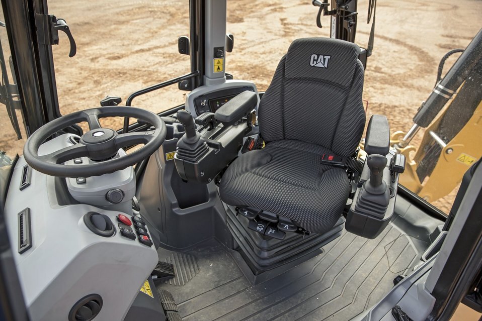 Fiecare aspect al cabinei a fost proiectat pentru confortul și siguranța dumneavoastră. Scaunul cu suspensie pneumatică se adaptează la greutatea dumneavoastră și puteți schimba poziția suportului pentru braț după cum vă este comod. Dumneavoastră sunteți cel care decideți când și dacă porniți comenzile electrohidraulice, pentru că în cabina dumneavoastră Cat, sunteți întotdeauna în control.