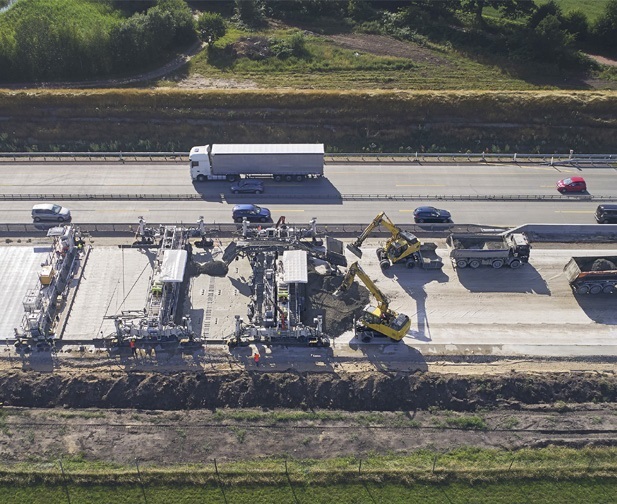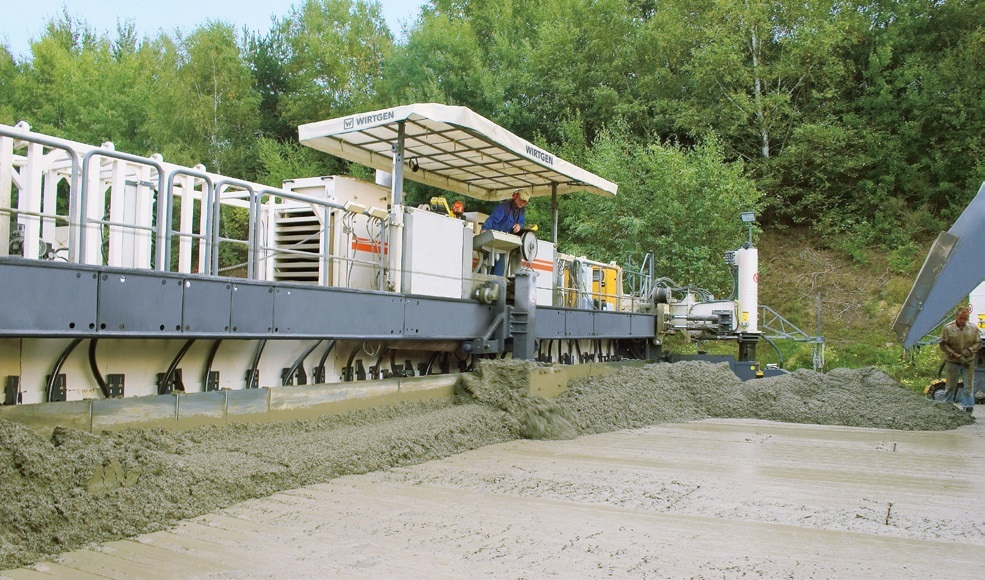 unerea în operă a betonului în două straturi cu un tren de pavare Wirtgen se dovedește deosebit de rentabilă și precisă.