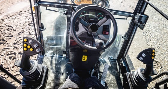 Noul sistem de direcție cu joystick permite operatorului să conducă utilajul cu ajutorul joystickului din partea stângă. Toate comenzile de direcție, inclusiv rotirea roților din față, deplasarea articulației cadrului și setarea înclinării roților sunt disponibile prin intermediul joystickului. De asemenea, noua funcție RTC permite operatorului să readucă toate comenzile de direcție înapoi la poziția centrată, prin simpla apăsare a butonului dedicat. Acest lucru permite operatorului să controleze utilajul fără a fi nevoit să își ia mâinile de pe joystick, ceea ce reduce efortul și crește productivitatea.