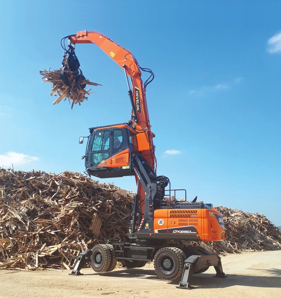 Compania Develon, cunoscută anterior sub numele de Doosan Construction Equipment, a lansat recent noile sale modele de excavatoare cu roți pentru manipularea materialelor DX230WMH-7 de 24 t și DX250WMH-7 de 25,6 t, conforme cu cerințele standardelor de emisii poluante UE Stage V și concepute pentru sectorul de reciclare a deșeurilor din construcții și demolări (C&D).