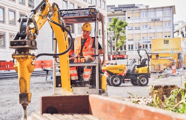 Pentru lucrările de compactare a solului pe acest șantier din Stuttgart, s-au folosit maiuri cu baterii, care au fost testate pe scară largă și sunt disponibile pe piață încă din 2015, precum și plăci de compactare cu baterii, în special din noua gamă APS. Dumperul cu șenile DT10e, dumperul cu roți DW15e și încărcătorul pe pneuri WL20e au făcut posibil transportul materialelor în mod eficient, fără evacuarea de emisii de noxe și cu emisii de zgomot foarte scăzute. Excavatorul Zero Tail EZ17e a fost implicat în lucrări de excavare și demolare. Prin utilizarea bateriilor litiuion fabricate cu tehnologia de ultimă oră, mașinile sunt capabile să îndeplinească cerințele ridicate privind performanțele, durabilitatea și robustețea.
