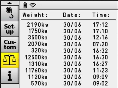 Cu PALcom P7, telecomanda radio dezvoltată de PALFINGER, trebuie pur și simplu să aduceți macaraua într-o poziție neutră în apropierea sarcinii, să o tarați, apoi puteți ridica sarcina și greutatea sarcinii este afișată pe ecran. În timpul următorului ciclu de încărcare, puteți ridica o a doua sarcină și puteți adăuga diferitele greutăți sau puteți scădea una din cealaltă. Sistemul documentează automat cele mai recente 10 operații de cântărire. Puteți integra chiar și orice accesoriu de macara, cum ar fi o furcă pentru paleți, un graifer sau o cupă graifer, iar opțiunea „WEIGHT” este, de asemenea, disponibilă în operarea cu troliu cu cablu. Cu această opțiune aveți întotdeauna un răspuns la întrebarea „Cât de grea este această sarcină?”