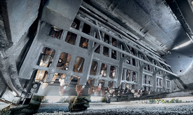 Tamburul de concasare și amestecare, robust și rezistent, este prevăzut cu suporturile HT18 pentru scule special concepute pentru aplicațiile de concasare, oferind rezultate optime atunci când se lucrează în teren pietros. Sculele sunt prevăzute cu muchii așchietoare de mari dimensiuni, rezistente la impact, din carbură, iar bazele suporturilor sunt protejate de elemente de protecție rezistente la uzură, realizate din oțel de înaltă rezistență. Toate acestea asigură un grad ridicat de utilizare a mașinii și o fiabilitate ridicată a procesului în aplicații solicitante. Dispozitivele robuste de protecție a marginilor reduc uzura coroanei de tăiere laterală a tamburului. Tamburul este acționat prin intermediul unei transmisii dezvoltate special pentru WRC 240(i), care permite realizarea unor viteze mari de rotație a rotorului.
